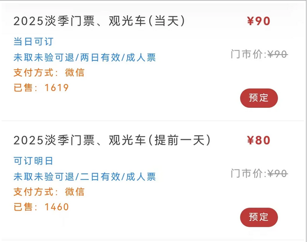记者在龙虎山景区线上购票渠说念看到,该景区门票与不雅光车票系组合票,票价为90元(今日预订)或80元(提前一天预订),搭客无法遴选仅购买门票。